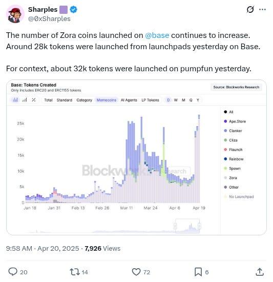 -Zora usage increasing as it remains under the spotlight this week, h/t @0xSharples: