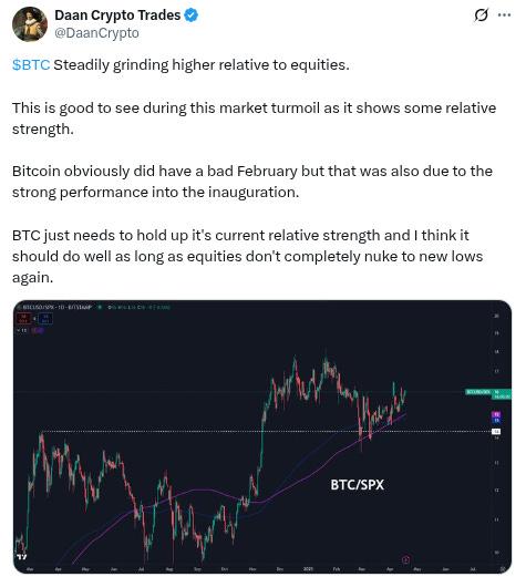 -Is $BTC beginning to copy gold’s recent pattern of outperformance vs equities? h/t @DaanCrypto: