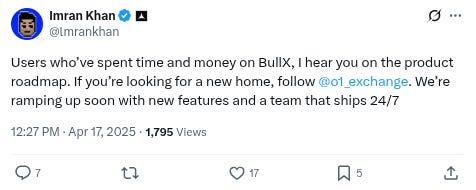 -New project called @o1_exchange. Twitter bio states “The fastest trading platform on chain – Built for speed. Designed for edge. Made for traders.” Followed by 5 of our mutuals. h/t @AresLabs_xyz and @imrankhan: