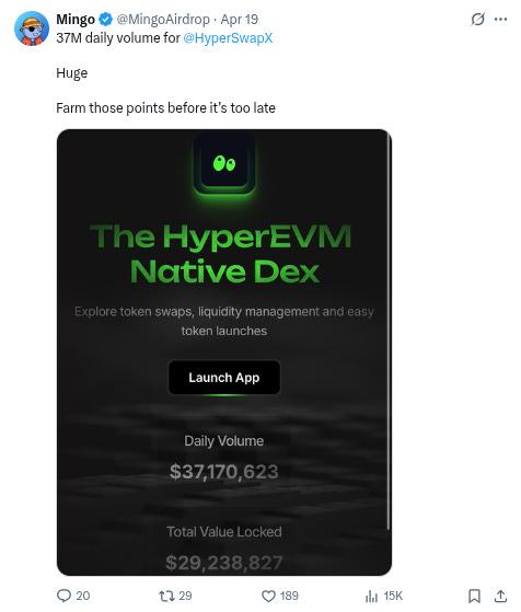 -Continued excitement about the @HyperSwapX airdrop, h/t @MingoAirdrop: