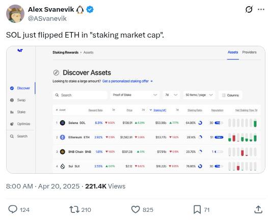 -Following stat that SOL has flipped ETH in ‘staking market cap’ is generating lots of debate today, h/t @ASvanevik: