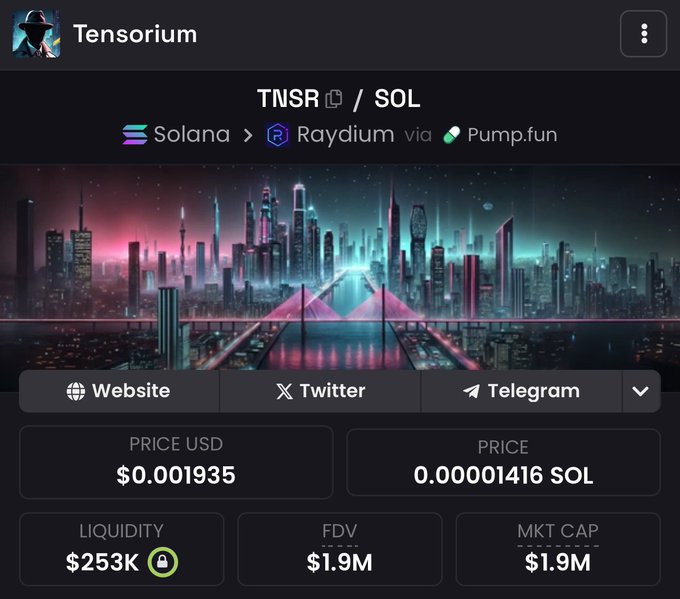 Aped into $TNSR currently sitting at a $1.9 million market cap It’s the most undervalued DEFAI token right now, with more mindshare than many big projects that have hit $100 million+ market caps Ca: HHoXk7WursT9DLBBhHzBWBbuQkfvvoNyHKpJi61mpump
