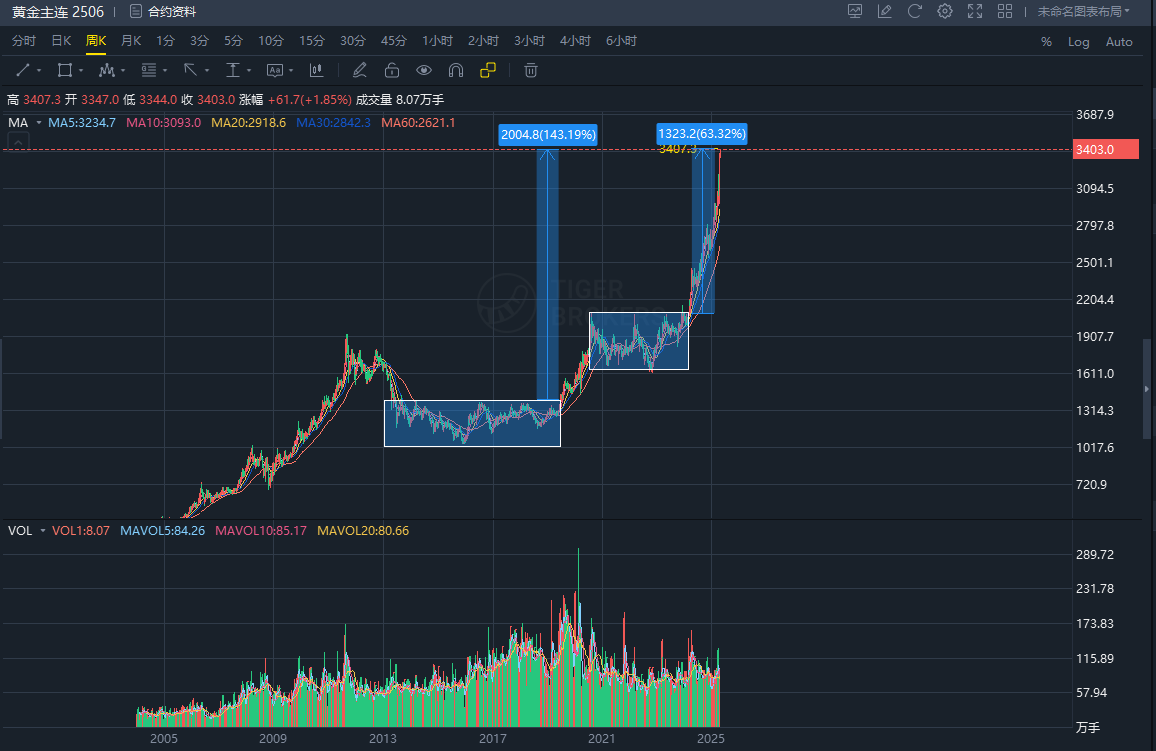 Gold has made two significant weekly structural breakthroughs One occurred in 2019, with a gain of 140%+ Another occurred in 2024, with a gain of 60%+ Overall, its gains are like a little brother compared to Bitcoin You can't even hold onto Bitcoin with higher gains Do you think you can hold onto gold with even lower gains? Answer me honestly!