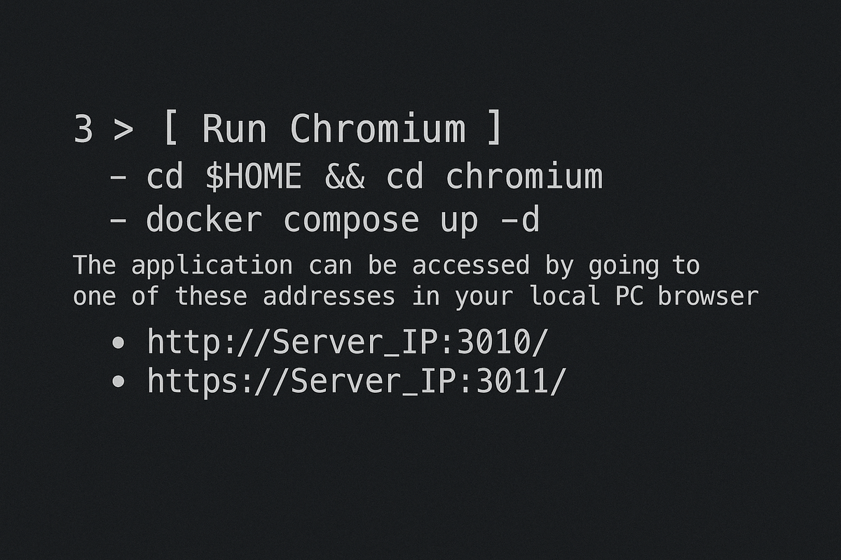• CUSTOM_USER & PASSWORD: Replace your favorite credentials to login to chromium