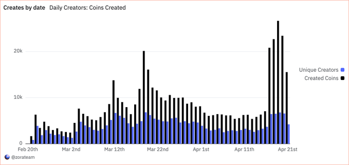 This combination — incentives + virality — set the stage for a rapid spike in Zora Coins engagement.