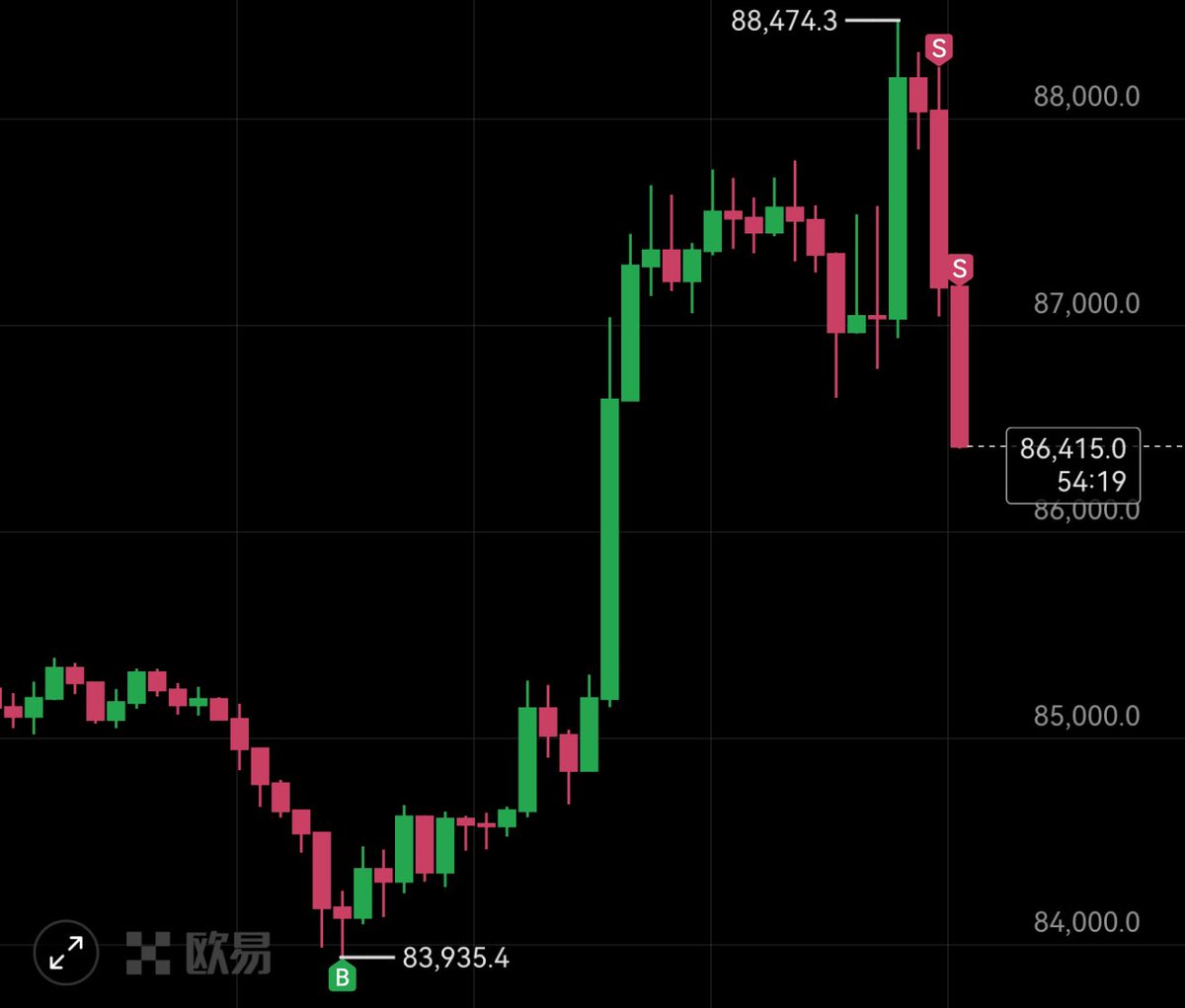 My choice: take partial profits on long positions, relieve psychological pressure, and move stop loss to 86284.