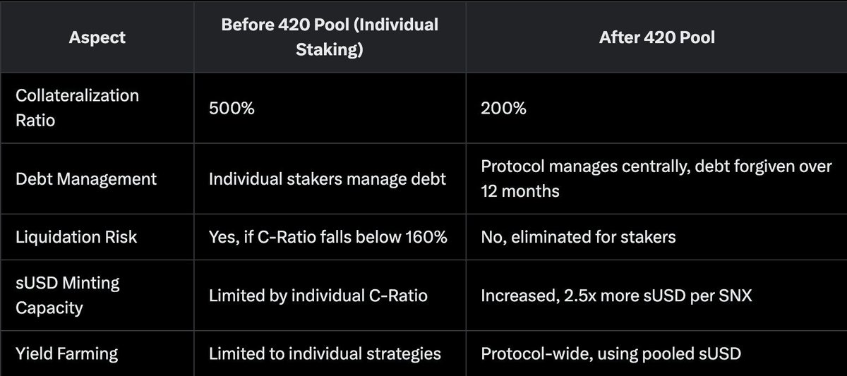 The SIP-420 proposal was originally introduced as a “revolution” for $ SNX Staking . Instead of each person Stake individually, $SNX is now pooled into a collective pool.