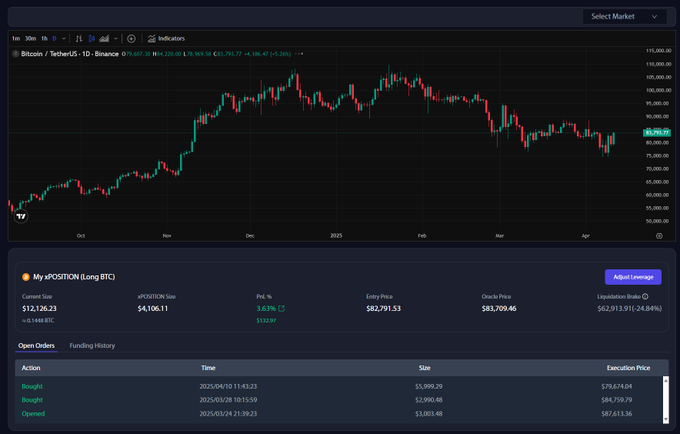 3/ Low-cost leveraged BTC option Using the "zero fee, zero interest" xPosition function of @protocol_fx protocol, you can long BTC up to 7 times with only 0.3% opening fee, and have its own leverage reduction and anti-liquidation protection:
