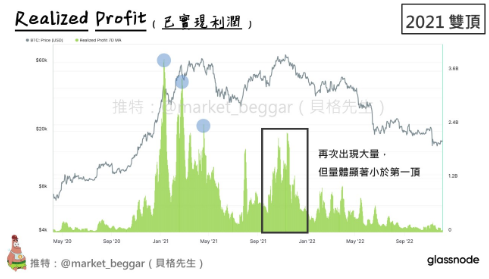 And at the second top in 2021, there was again a massive Realized Profit, but it's worth noting that the volume was relatively smaller compared to 2021.