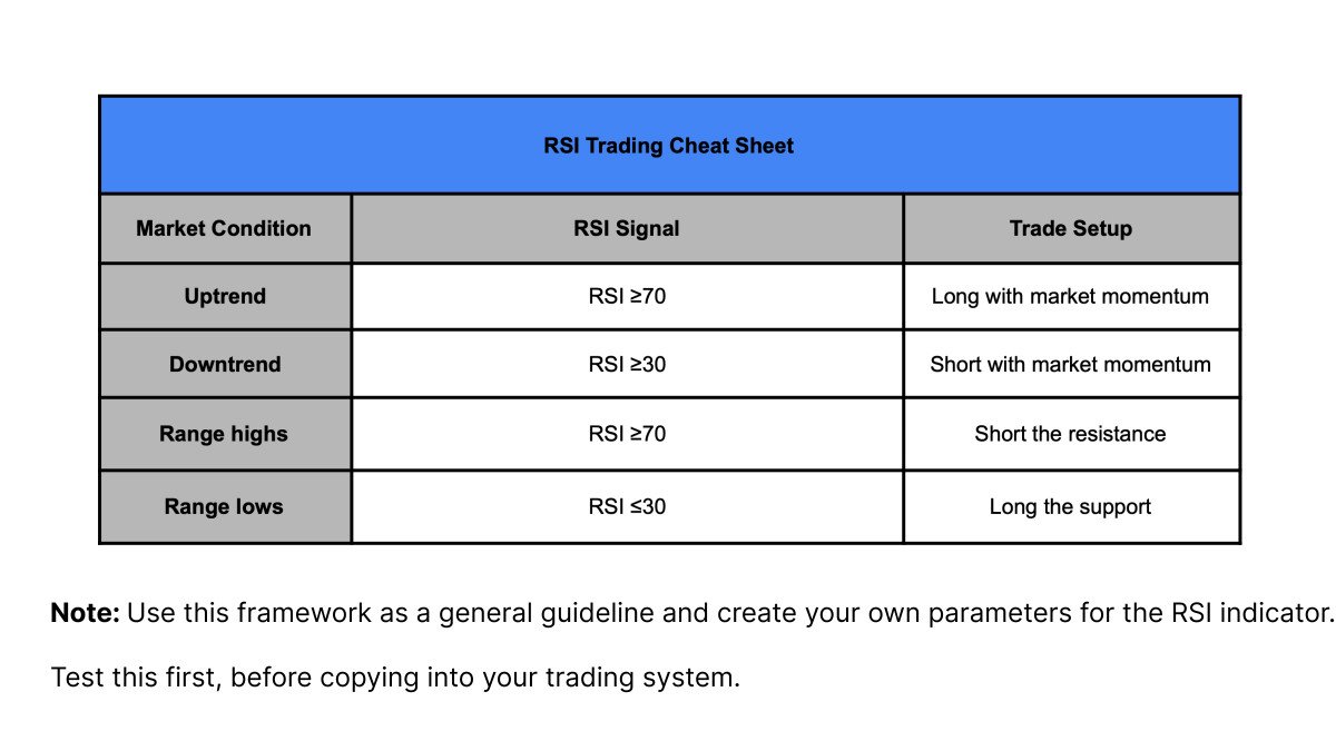 Here's a cheat sheet for RSI+ Price-based confirmations: