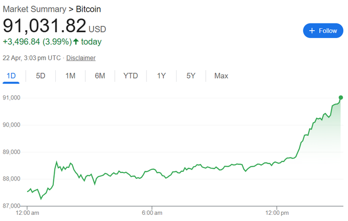 $BTC just crossed $91K.