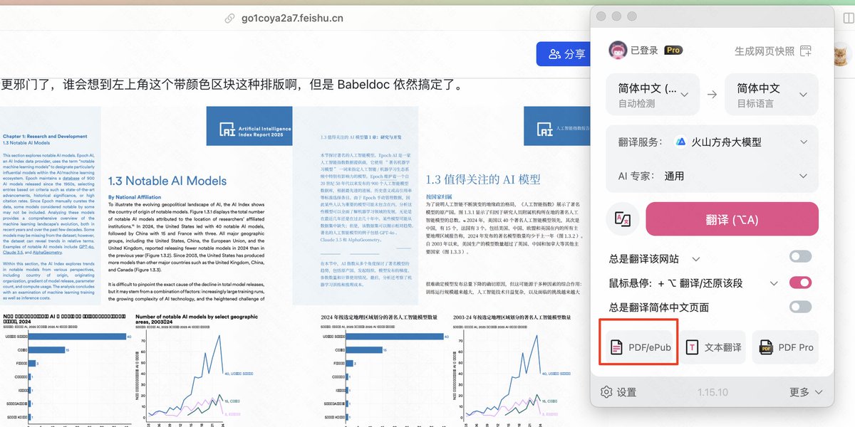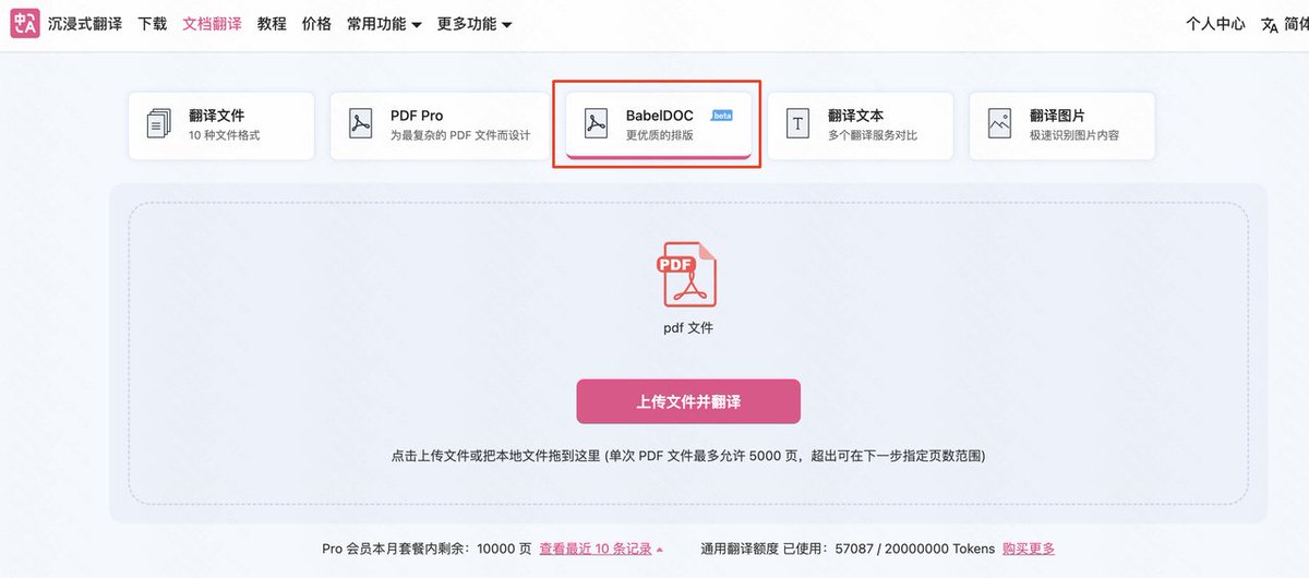 If you have installed immersive translation, you can click on the plugin, then click on PDF/ePub in the picture to enter the document translation interface, and then select BabelDOC