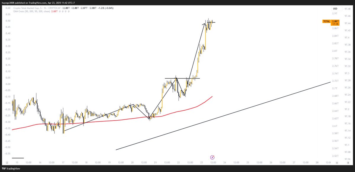 Zoom into smaller frames like H4, H1, you will see one thing as clear as day: the price is creating an upward structure - the bottom is higher than the previous bottom, the top is also higher than the previous top.