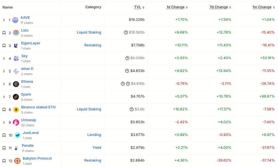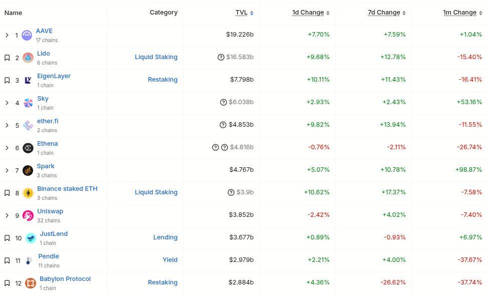 Here’s The Top 12 Protocols By TVL (from @DefiLlama):