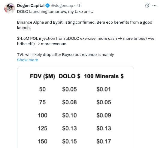 -$DOLO/Dolomite TGE tomorrow is generating much attention, h/t @degencap (click tweet to read some in-depth analysis on it):
