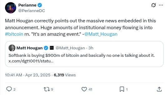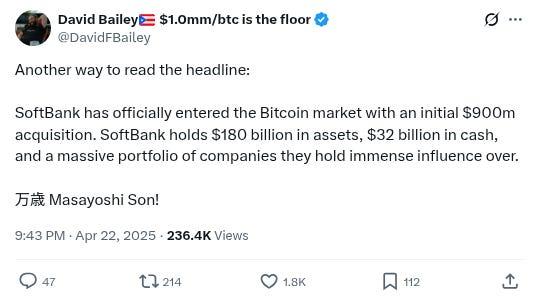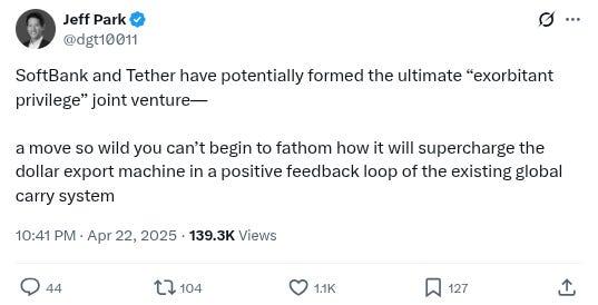 -New story about Softbank partnering with Tether on a new venture seems quite significant but seems to be somewhat slipping under the radar so far: