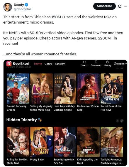 -Fascinating things are happening in the AI content space, h/t @deedydas: