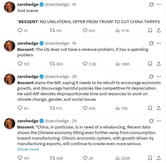 -Treasury Secretary Scott Bessent generated lots of headlines with his speech today, but nothing too massive seems to have been announced, h/t @zerohedge: