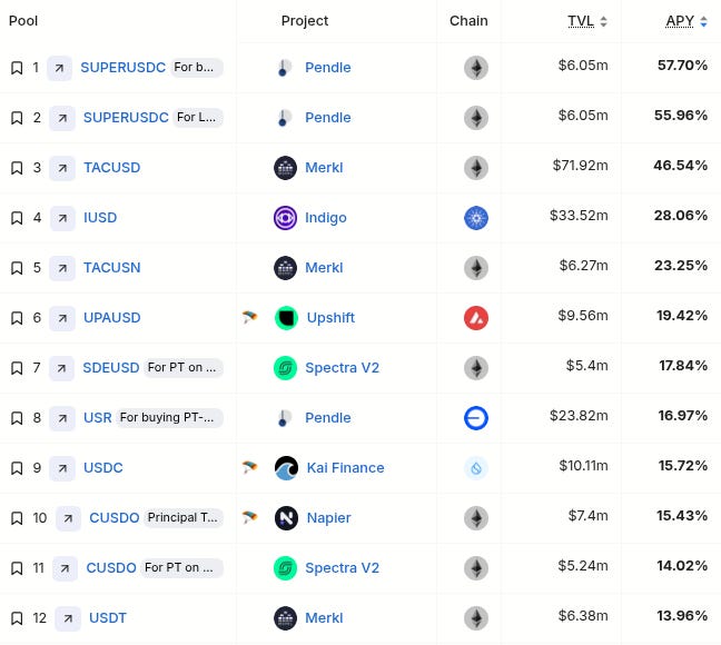 They are consistently providing some of the best stablecoin yields in all of defi, as you can regularly see in the ‘Top Stablecoin Yields’ results from @DefiLlama we include lower down in the newsletter (despite this not even including the 5x Upshift Points boost you currently get by utilizing them!), and currently have some massive yield opportunities available for $ETH, $AVAX, and other assets as well!