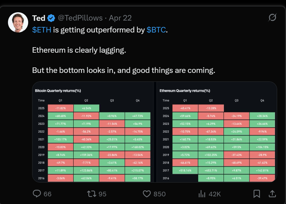 Ethereum's price has not reached a new high in 2025, with the ETH/BTC exchange rate falling to a five-year low (0.02), and narratives such as L2 and restaking have failed to effectively enhance its value. At the same time, transaction fees have dropped to their lowest level since 2020, averaging only $0.36 per transaction.