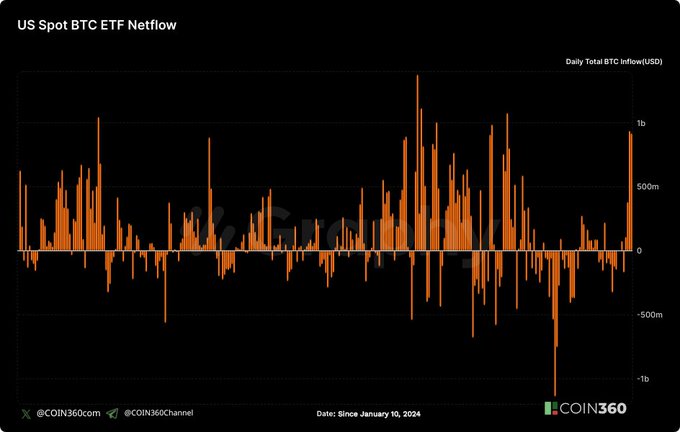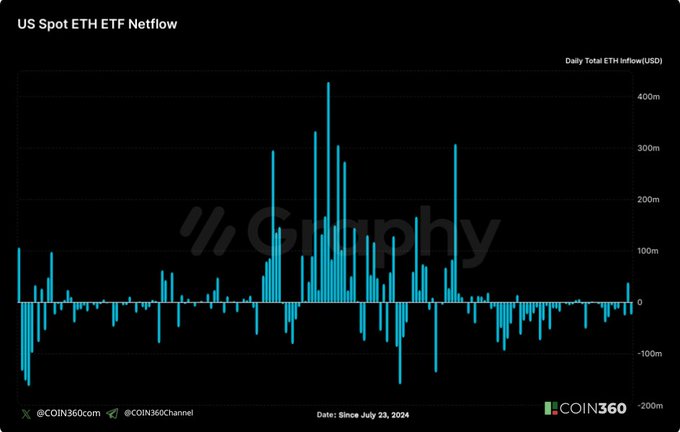US Spot $BTC vs $ETH ETF netflows show a lag in demand between Bitcoin & Ether: