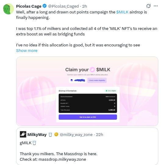 -$MILK airdrop from @milky_way_zone has taken place, h/t @Picolas_Caged: