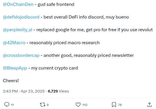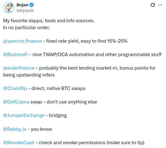 (note: this includes new projects we find through combing Twitter each day and going through newly launched protocols added by @DefiLlama, limited primarily to new projects that have at least some TVL or are followed by at least some of our mutuals… Disclaimer: these are not pre-vetted by us so make sure to DYOR!)