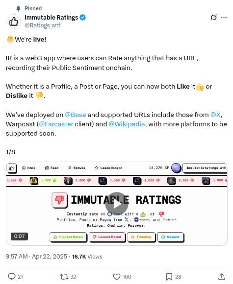 -New project called @Ratings_wtf. Twitter bio states “Ratings. Onchain. Forever.” Followed by 8 of our mutuals. h/t @AresLabs_xyz: