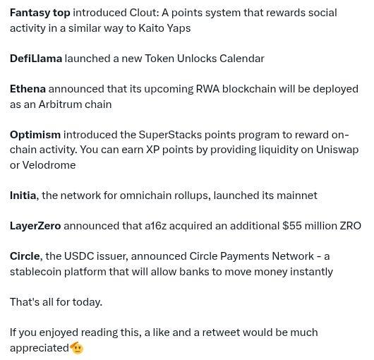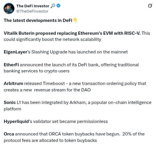 -Vitalik’s forum post about RISC-V continues to generate attention, as does Fantasy Top’s introduction of ‘Clout’ as they move to partially replicate Kaito’s architecture/features in the wake of the latter’s success, h/t defi news from @TheDeFinvestor: