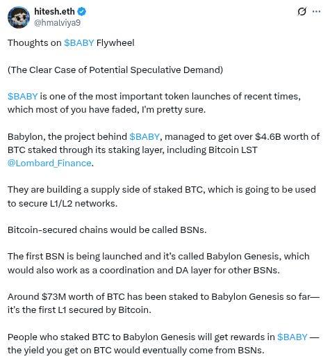 -$BABY generating increasing discussion on the TL, good example c/o @hmalviya9: