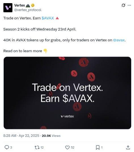 Season Two of @vertex_protocol’s $AVAX Rewards kicks off today!