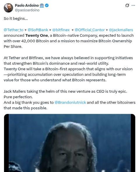 -More information has been released on the new Tether + Softbank venture, although some are wondering how it might differ from stuff like MicroStrategy and the Bitcoin ETF’s, h/t Tether CEO Paolo Ardoino: