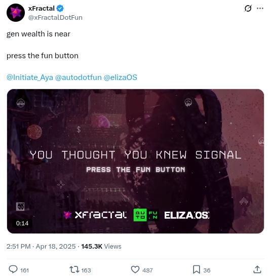 -New project called @xFractalDotFun. Twitter bio states “the intelligence layer for narrative-driven markets ▓░░░░░░░ 1‱ hallucinating w/ @Initiate_Aya”. Followed by 8 of our mutuals.