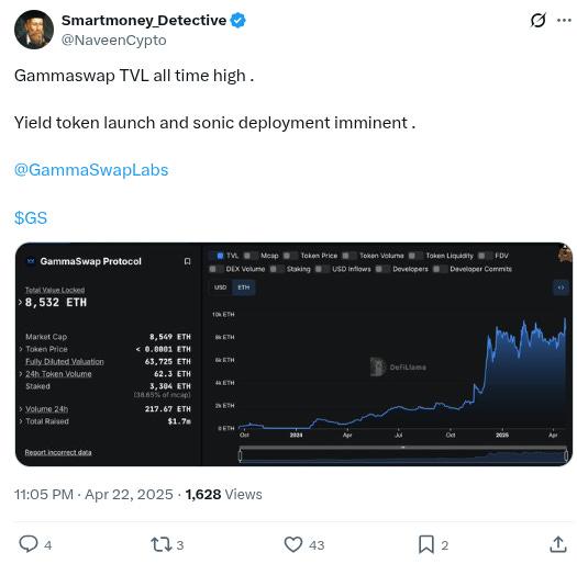-@GammaSwapLabs continuing to generate increased TVL + excitement, h/t @NaveenCrypto: