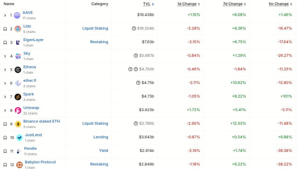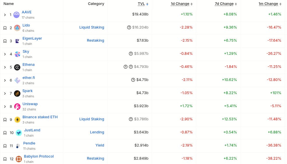 Here’s The Top 12 Protocols By TVL (from @DefiLlama):