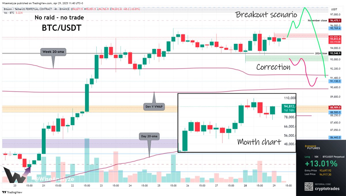 Nearest bullish targets are 94560 / 94430 - but these are outside liquidity pools! That means that in order to work bullish they should quickly push price back up above 95k.