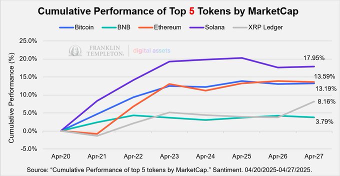 What Happened Last Week in Crypto (4/20 -4/27) Bitcoin's Performance: #Bitcoin's dominance in the crypto market continues to soar, showcasing bullish performance despite ongoing market uncertainties. Last week, massive inflows into BTC ETFs were observed. SUI Outperformance: