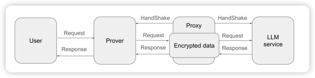 The verifier only needs to confirm the validity of the Proxy's signed ciphertext and verify the Zk proof provided by the Prover to be confident that the response indeed comes from the LLM and has not been tampered with—without revealing any plaintext content.