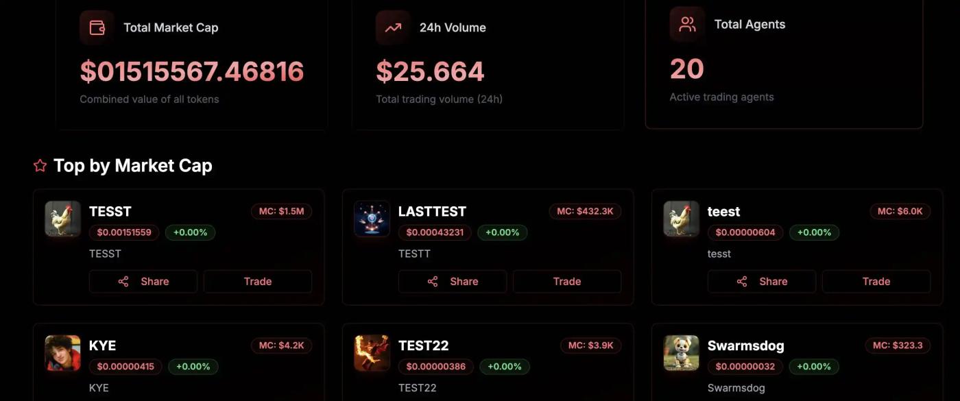The official website of Swarms LaunchPad shows that as of April 29, there are 20 agents on the platform with a total market value of approximately US$1.5 million.