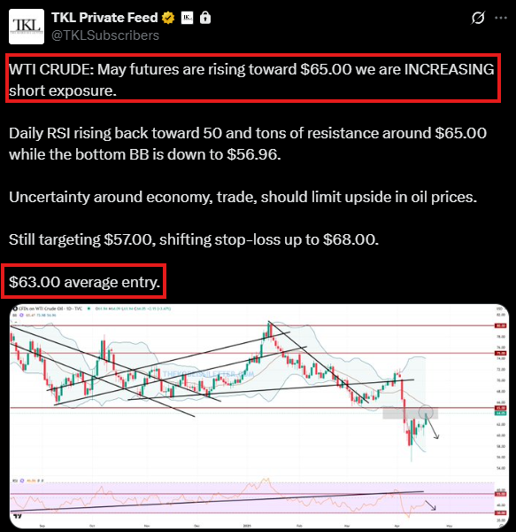 Our premium members took SHORTS in oil as it neared $65.00 earlier this month.