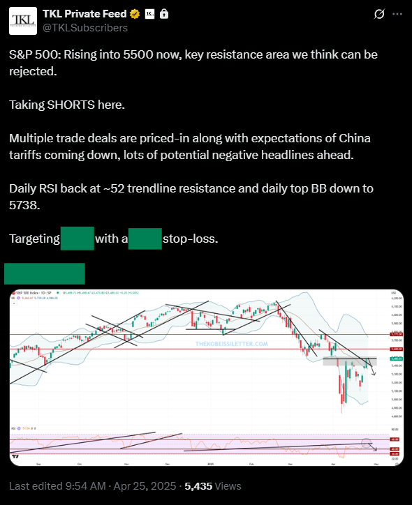 As posted below for our premium members, we took shorts as the S&P 500 rallied into 5500+.