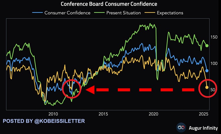 Consumer confidence is falling off of a cliff amid uncertainty.