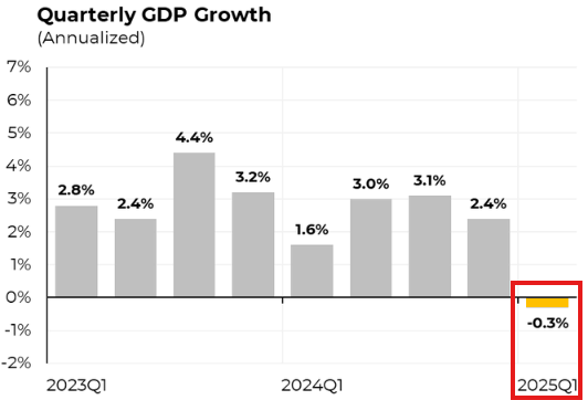 New data showed that US GDP CONTRATCTED by -0.3% in Q1 2025, while +0.3% growth was expected.