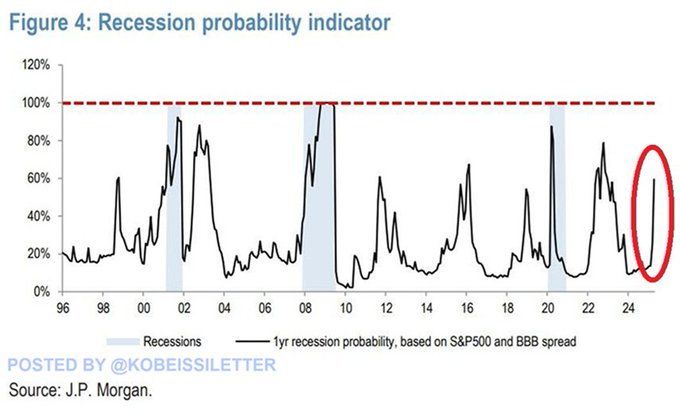 1-year recession odds priced by the S&P 500 earnings yield and the BBB-rated corporate bond spread are surging.