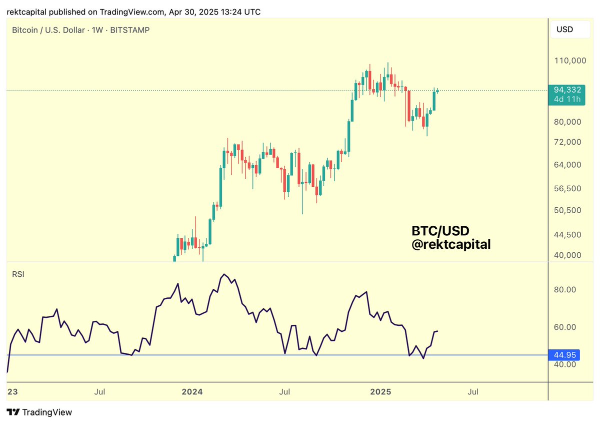 #BTC The bottom indeed was not far away In fact, Weekly RSI history repeated once again Because though price didn't bottom right away when the RSI first made contact with the Weekly RSI=44, ultimately Bitcoin ended up being very close to the bottom $BTC #Crypto #Bitcoin twitter.com/rektcapital/status...