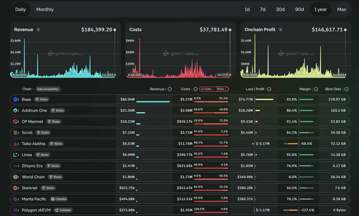 To add to that, @base is currently the L2 with the highest revenue of up to 80 million USD/year with a profit of 74 million USD/year, the cost to pay for Layer 1 is about 6 million USD.