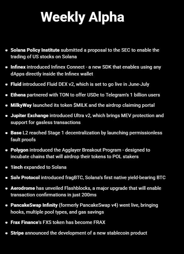 The latest DeFi developments👇 Solana Policy Institute submitted a proposal to the SEC to enable the trading of US stocks on Solana Infinex introduced Infinex Connect - a new SDK that enables using any dApps directly inside the Infinex wallet Fluid introduced Fluid DEX v2,