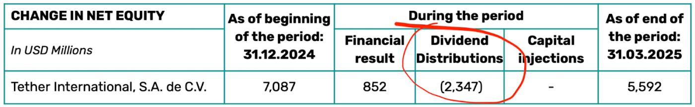 Tether’s operating profit for the quarter was just $1 billion, so the $2.3 billion dividend cuts into their “equity” buffer and they won’t be doing that every quarter.