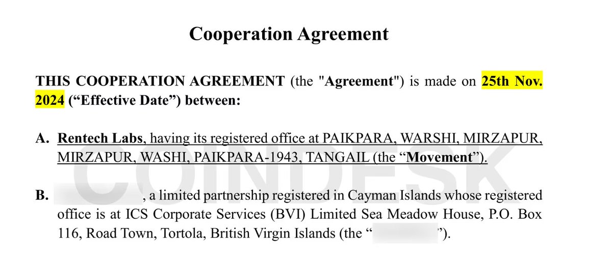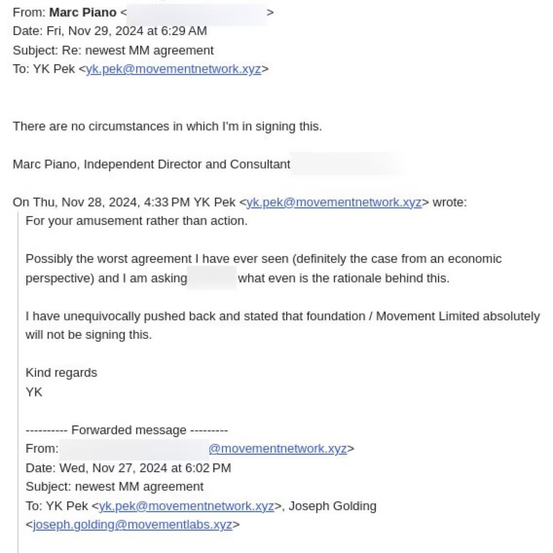 On November 25, 2024, a Singaporean company called Rentech (founded by Galen Law-Kun) signed a market-making contract with an intermediary entity called Web3Port, claiming to represent Movement.