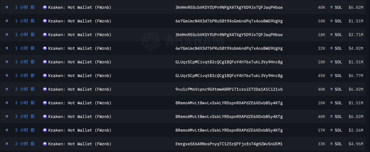 In the past 2 hours, 300,000 SOL ($45.3M) was withdrawn from Kraken by 6 addresses and then staked. These 6 addresses should belong to the same whale/institution. Address link 🔗👉: intel.arkm.com/explorer/addres... intel.arkm.com/explorer/addres... intel.arkm.com/explorer/addres... intel.arkm.com/explorer/addres... intel.arkm.com/explorer/addres... intel.arkm.com/explorer/addres... x.com/EmberCN/status/191832484...